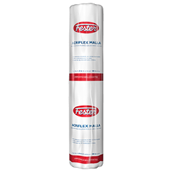 Malla tejida en forma cuadricular elaborada con fibras de poliéster flexible diseñada para reforzar multidireccionalmente los sistemas impermeables.